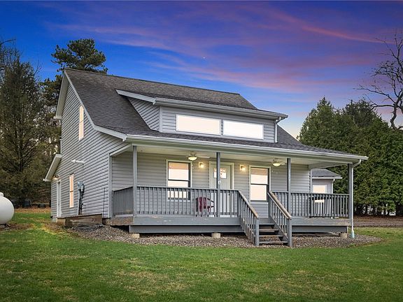 Discover peaceful country living on 1.29 private acres in the heart of Saxonburg~ This charming newer home features a stunning white kitchen with sleek stainless appliances, seamlessly open to a spacious combination family and dining room- perfect for entertaining or everyday living~ Enjoy the convenience of first floor laundry & a versatile enclosed space that offers flexibility for a sitting area, office or playroom~ Enjoy 2 spacious bedrooms and a full bath on the upper level and one bedroom with a full bath on the main level that can be used as a flex room~For those that need space, this property delivers ~ A detached garage provides room for nearly 3 vehicles, while the pole building features x- large doors perfect for storage, hobbies and a workshop~ The expansive yard is a true gem offering possibilities of gardening, outdoor entertaining or just soaking up nature~Enjoy quiet mornings or relaxing evenings on the covered front porch taking in the serene surroundings~ MUST SEE