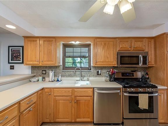 Three bed 2 1/2 bath home in the beautiful neighborhood of Dutchtown Village. Oak kitchen cabinets with raised breakfast bar and pantry. Bay window in first floor family room. Bath remodeled along with ceramic tile, paint, stove, dishwasher and microwave. Lower level den. Oil furnace was changed to gas. Walkout basement and rear entrance to concrete patio and fantastic covered wooden deck leads you to the new paved driveway. The clean landscaping compliments the brand new siding and roof.