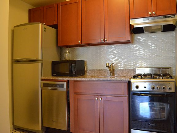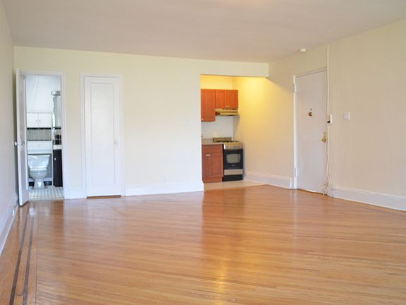 Nice, large apartment with working open kitchenette with full size fridge and good storage cabinets. Apartment has beautiful hardwood floors, much light and full size tiled bath. Heat and hot water is included. Available ASAP. Upfront costs: 1. Application fee- $20.00. 2. First month rent + month;s security deposit. This due upon lease signing.