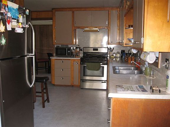 2-3 bedrooms, home has been nicely remodeled throughout. Newer flooring, newer kitchen, appliances stay, deck of living room with sliding glass door, huge yard, in nice out of the way location.