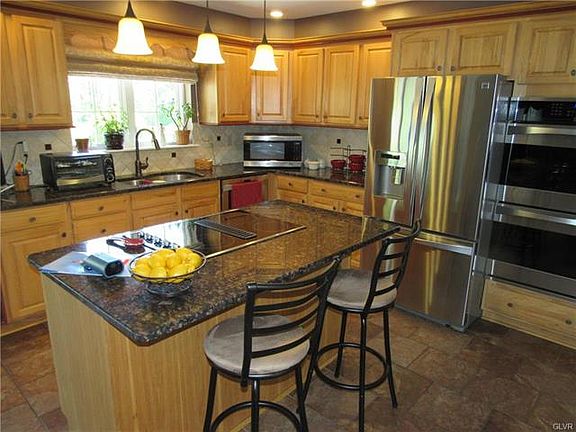 I'll Let the pictures do most of the talking. (there are nearly 50 here) Aside from that, this stunning 4 bedrm home is nestled in next to the the wooded borders of beautiful Beltzville Lake. A quick drive has you enjoying the lake amenities or relaxing with famous music acts at Penn's Peak or even skiing the slopes in winter at Blue Mountain. Should you decide to stay home here's a list of the features of this fantastic home. **3 car Garage** modern eat in kitchen with poolside views and Granite counter tops with center island** stainless double ovens** 1st floor laundry**Tile floors** large family room with gas fireplace** glass panel pocket doors separate formal living room**dining room w/hardwood floors** arched open doorways**Breathtaking 2 story tiled foyer with spiral staircase**mstr bath w/jetted soaking tub**mstr bedroom sitting area**jack-n-jill bathroom**fabulous huge finished recreation room**berber carpet**covered poolside patio** pool with w/lighted waterfall**Alarm sys**