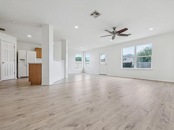 Well-kept, one-story brick home just minutes from Downtown Hutto's shops, restaurants, and entertainment! This 3-bedroom, 2-bath home features a 2-car garage and thoughtful updates throughout. The kitchen opens seamlessly to the living and dining areas, with wood cabinetry, a spacious breakfast bar, and plenty of room to gather. You'll love the brand-new LVP flooring throughout—no carpet anywhere. The roof was replaced in 2025, offering added value and peace of mind. The private primary suite includes a full bathroom and walk-in closet. The fenced backyard features a patio and low-maintenance landscaping—perfect for relaxing without the upkeep. All just 30 minutes from Downtown Austin!