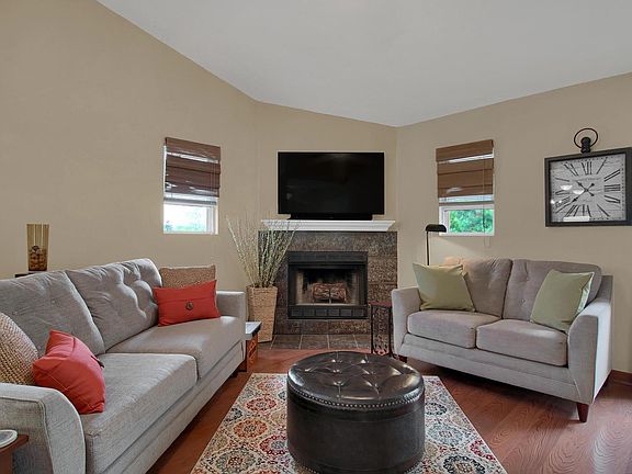 As you enter this beautiful home, you'll love the open floor plan with vaulted ceiling. Wood burning fireplace highlights Living Rm. Kitchen offers ample storage, stainless steel appliances, granite countertops, gas cooktop & window over the sink. The spacious main floor master bedroom opens to the gorgeous deck, patio and wooded backyard where you can enjoy your coffee in the morning and wine while watching the sun set. Luxury full bath completes the main level. A large landing area at the top of the stairs is perfect for a quiet work space. The upper level also hosts 2 more bedrooms a full bathroom with jetted tub, and comfort height vanity with quartz top. Convenience of second floor laundry is a luxury! A two-car attached garage and a utility shed at the back of the home allow for plenty of storage. The beautiful yard and landscaping give this house fabulous curb appeal to welcome you home at the end of your day! Roof replaced in '12, Furnace and AC new in '17. Schedule today!