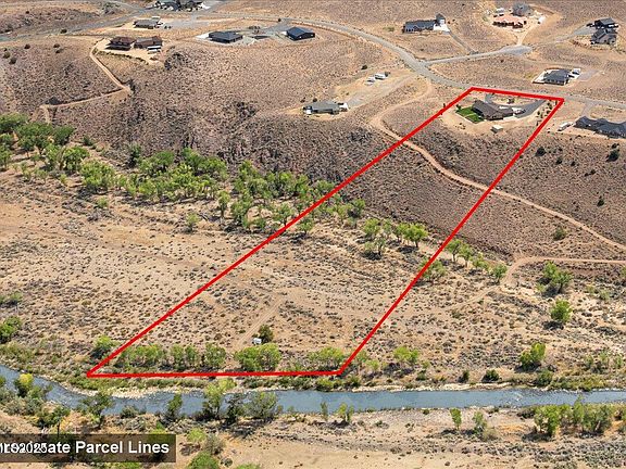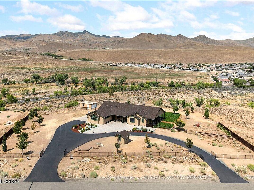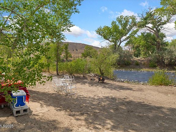 Rising above the Carson River with commanding views and rare river frontage, 110 River Vista Drive offers an extraordinary opportunity to own one of Dayton's most distinctive properties. With 7.6 acres of land and more than 200 feet of private access to the river, this home blends thoughtful craftsmanship with the natural beauty of Northern Nevada to create a setting that is both refined and unforgettable. The approach is as impressive as the home itself. A wide semi-circular paver driveway provides a dramatic entry and generous parking, while a welcoming covered porch sets the tone for what awaits inside. Step through the front door and you are immediately greeted by soaring ceilings, a wide-open floor plan, and expansive Andersen windows that frame panoramic views of the surrounding mountains and flowing river. The abundance of natural light highlights every design detail and creates an atmosphere of warmth and sophistication. The heart of the home is the expansive great room, anchored by an elite wood-burning fireplace that brings both style and function. Oversized doors open seamlessly to a covered patio and landscaped lawn, extending the living space outdoors. The kitchen is equally impressive—offering knotty birch cabinetry, a generous island, a walk-in pantry, and premium built-in appliances. Designed with both form and function in mind, it provides the perfect balance of storage, workspace, and timeless appeal. The primary suite is a private retreat within the home, complete with dual vanities, a spacious walk-in shower, a garden tub, and an oversized walk-in closet. Two additional bedrooms are located on the opposite wing of the home, ensuring privacy for all. Every space has been thoughtfully designed, with multiple access points connecting the indoors to the outdoors, making the surrounding views and fresh air a natural extension of daily living. Practical features elevate the property further. The finished three-car garage is insulated, temperature-controlled, and filled with natural light. A well-designed laundry room includes abundant cabinetry, counter space, and even a built-in pet wash station. For those considering future expansion, utility connections are already in place for a detached shop—offering flexibility for additional storage, workspace, or hobbies without major modifications. Perhaps the most extraordinary element of this estate is the private easement leading to the lower acreage and the banks of the Carson River. Here, a secluded natural haven unfolds, complete with a sandy beach-like area shaded by mature cottonwoods. It is a place to enjoy the simple beauty of the outdoors—whether relaxing by the water, launching a kayak, or simply appreciating the peace of a private riverside setting. Additional upgrades include 2x6 construction, a 50-year roof, dual high-efficiency heating and cooling systems, premium flooring, extensive paver hardscaping, RV parking, and detached storage. Every feature speaks to quality, durability, and care. 110 River Vista Drive is more than a residence—it is an estate that captures the essence of riverfront living in Northern Nevada. With its rare blend of craftsmanship, thoughtful upgrades, and unmatched setting, this property stands as a truly unique offering in the market.