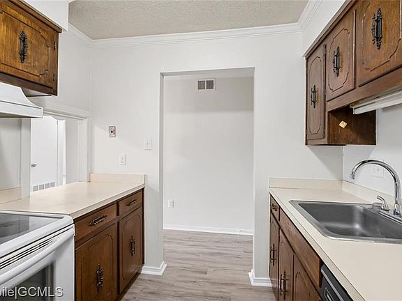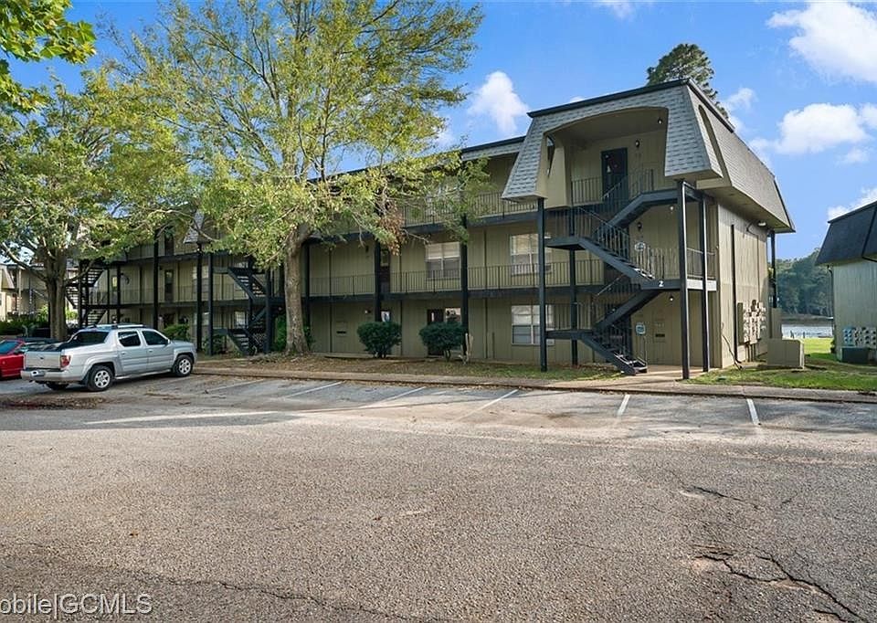 LOCATED ON DOG RIVER. Here's your chance to own a cute updated 2 bedroom 1 bath condo that's in a gated community with a fantastic view of beautiful Dog River. This 2 bedroom unit is a downstairs unit that offers easy access for parking, and pool amenities. Freshly painted inside with new flooring and updated light fixtures. The Kitchen offer views of the spacious living room which opens to a large covered porch and waterfront fun.Utility area is located inside. Other amenities include: large pool, pavilion area , tennis court, boat docks with fish cleaning area, pier, launch, boat storage, wet slips and a large laundry facility and so much more.. Monthly Condo fees are approx. of $236.00 which include, termite bond, exterior insurance and maintenance (including pool and landscaping) water, and garbage. All information/figures area approx.