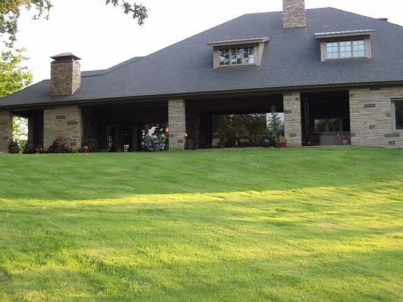 Beautiful home with over 9,200 square feet. Sitting on 5.54 acres on the river with a boat dock. Gourmet kitchen with top of the line appliances. In ground swimming pool, sprinkler system. His and her bath in master suite with steam room. Three car heated garage. Master suite, two living rooms, game room, kitchen, and formal dining downstairs. Three bedrooms and den upstairs. Fireplace inside and fireplace outside on patio. 5 ft underground, electric fence.
