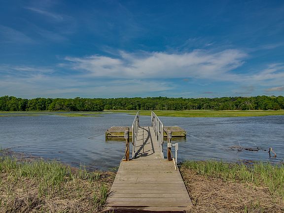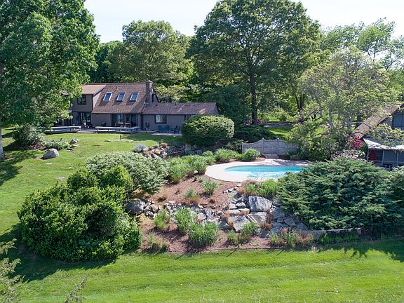Majestically sited on the East River and Audubon Salt Meadow Sanctuary is this custom post and beam style contemporary. Sweeping, one of a kind views of this protected and truly special salt water gem. Relax on your large deck and feel the cool breezes as you watch the ever changing landscape of osprey, egrets and wildlife. The beautifully landscaped yard features ornamental plantings and an in ground salt water pool with commanding views of the river. The lush green lawn slopes gently toward the river and dock. Tie up your kayak or small boat, take a cruise to Long Island Sound or jump off the dock and take a swim. Inside the beauty continues. The enormous kitchen has walls of glass to capture the scenery. Loads of cabinetry, an island, Sub Zero refrigerator and gas cooktop all enhance this space. In the kitchen is room for dining, a sitting area and access to the screened porch. The post and beam styling continues throughout the interior making the spaces truly unique. The family room has a cathedral ceiling and gorgeous stone fireplace. There is a large living room with sliders to the deck and 2 bedrooms, one with en-suite bath on the main living level. Upstairs is the private and tranquil master suite with vaulted ceiling and views of the Audubon Salt Meadow Sanctuary. The en-suite bath is tastefully done with marble floor and charming claw foot tub. On this level is also studio or office space. Designed to maximize views this home is the perfect nature lovers retreat.