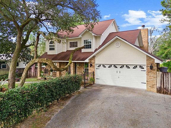 WATERFRONT Home! CONVENIENTLY located just minutes from the beaches of 30A and a short boat ride down the canal to Mallet Bayou and Choctawhatchee Bay. On a private no-through street. Southern style home with a well cultivated front courtyard, mature live oak trees and relaxing Koi pond. Back yard features an expansive deck off the house and a dock on the canal with a boat lift, ready for your boating adventures. Walking through the front door you get that grand entrance feeling in the foyer and notice the beautiful custom lighting. LVP flooring throughout whole home. Kitchen is open concept with sitting area and breakfast nook attached, along with a wood burning fireplace in the sitting area. Formal living space and dining room are adjacent for great entertainment options. A half bath is also conveniently located downstairs for easy guest access.