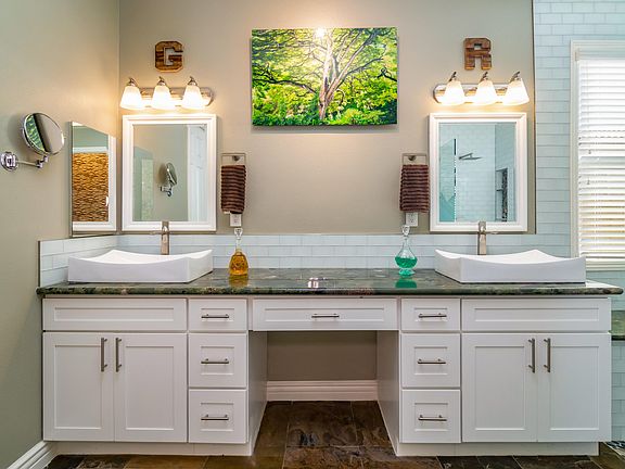 This is the perfect family home, offers an ample floorplan with lots of open, free flowing space and plenty of upgrades. The great room and kitchen offer direct views to the electric switch starter gas fireplace and entertainment niche. The kitchen features upgraded granite counter tops, stainless steel appliances, 5 burner gas cooktop, double oven, and a black Blanco composite sink. The master bedroom and living areas feature 9 and 10-foot ceilings with coffered accents. Ideal location neighboring Ronald Reagan Elementary School and access to 26-acres of amenities at Freedom Park. New Upgrades include: Custom wall-paper in laundry, 2-tone Paint thorough out, Soft Close Cabinets w/ Lazy Susan & pullout trash drawer, 5 detailed Baseboard, Custom Metal Detail Entry Pattern in tile that matches the Fireplace Mantle, Great Room Surround Sound Speakers, Stacked Stone Fireplace Surround, 'Nordic Black' (honed finish) & 'Jurassic Green' Granite (polished), & Pet Door.