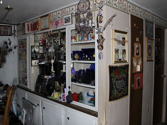 Nice sized 2+2 double wide with metal roof, full length covered patios front and back, fenced yard for your pets and numerous outbuildings. There is a detached metal carport with side walls and end walls that is currently used for entertaining/storage. Plenty of room on lot for boat or RV/trailer parking. Home has aluminum siding and metal skirting for low maintenance. Bathrooms and kitchen are outdated and could use a refresh. Issues with this property are cosmetic and with some clean up and sweat equity the value could be greatly enhanced. All appliances remain (washer/dryer, FS-fridge, FS-gas range, dishwasher). Hot tub is negotiable. Cash only sale.