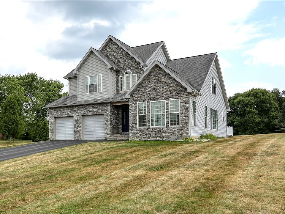 This three-bedroom, two-story house with a coveted main floor primary suite, was built in 2010 and rests on an acre of level land in New Sewickley Township, just ten minutes from Zelienople with easy access to I-79 and Cranberry Township. The 66-panel solar ground array comes with the property and is warranted by Solar Revolution in Erie, PA. The eat-in kitchen features a sliding door to the back patio, an electric range with two ovens, stainless steel appliances, garbage disposal, and a large pantry. The bonus room on the second floor could be used as a fourth bedroom. The basement has high ceilings, a large finished family room, an unfinished area for storage and laundry area, a workshop area, and a Bilco door for outside access.