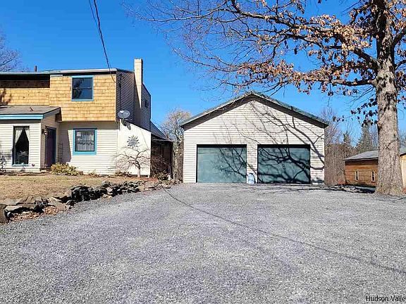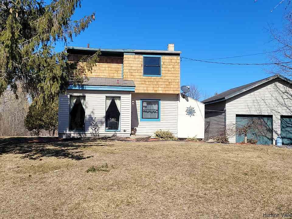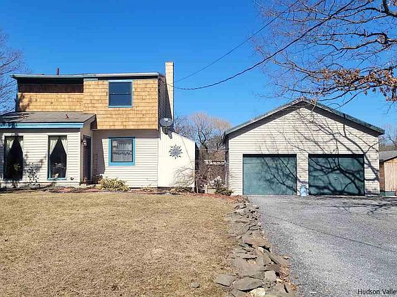 Come see this customized designed colonial home of your dreams set upon 2 beautiful acres, 1 mile from Hudson River, & Villlage of Germantown, only 2 hrs from NYC. This 3 bedroom, 1.5 bathroom home has two separate massive garages and gives generous space to move about without losing that quaint, cozy atmosphere when it's time to cuddle up by the wood stove. Garage Specs: 1826 total sq ft to convert or create additional living space, workshop, or studio space of your dreams (garage #1 24ft x 24ft) (garage #2 25ft X 50ft). Features: Radiant heated floors, remodeled family room and kitchen with butcher block island, outdoor dining room and pergola, hand crafted wood ceilings, access to an outdoor deck with hot tub, wood stove, laundry room, outdoor fire pit, and two separate wells. Recently Updated: Windows '21, cedar shake siding '20, kitchen '18, radiant heat '18, water heater '18, water softener '16, and slate roof '13.