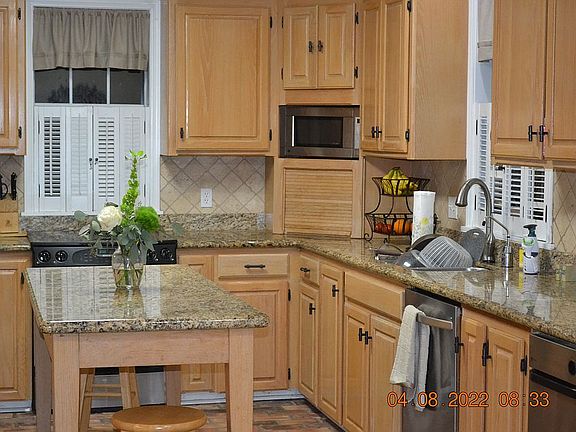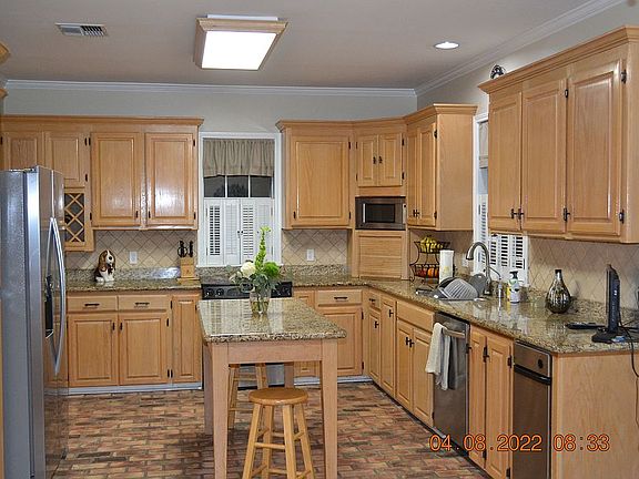 You will want to see this lovely home. It sits on 2 lots with a breezeway connecting the home to the garage, doesnt that just sound southern. When you enter the foyer it is very wide, you see the stairwell to the right & straight back to a wall of windows in the den. The den is large & has a fireplace with hand carved detailing & a brick paver hearth. The floors in the foyer, dining room & den are beautiful real hardwood pine. The kitchen has lots of cabinets, a window over the range & over the sink, a wine nook, a computer desk & a large breakfast area all with brick pavers. Several of the windows are beautifully oversized with plantation shutters. The master is huge. Probably large enough to accommodate a sitting area.The upstairs landing has two separate areas that could hold to separate computers for the kids. There are 3 more bedrooms -1 downstairs, 2 upstairs. There is double gate access, a nice workshop in the garage.