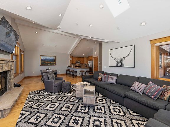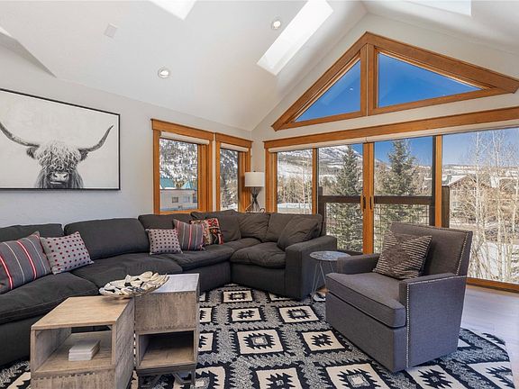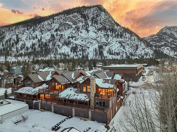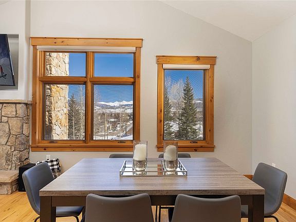 Stunning top-floor corner 2+den (some call this a 3br) residence as the den functions as an office and third sleeping area. This original developers residence possess many unique features like two storage units, an extended vaulted great room with 4 Velux skylights, two decks, a dedicated laundry room, primary suite with stone fireplace and more. The spacious deck has a bird's eye view of Frisco's Historic Park that offers the popular 'Thursday Concert Series', one of the owner's favorite times to host guests. The great room has windows on three sides with 270 degree views from the Ten Mile Canyon to Buffalo Mountain and up to Grays and Torreys to the East. Two assigned parking spots in the buildings private garage. Just steps to Main Street. The large deck has a junction box for a hot tub. Offered turn-key for immediate enjoyment.