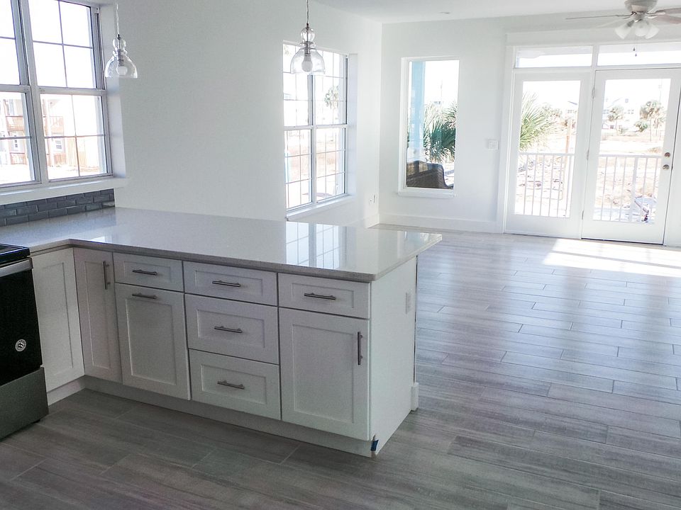 400' is the distance you'd have to walk from your front door to the beautiful Gulf of Mexico. Public Beach access is located right to the end of the street. Live at the water's edge without the fear that comes with it. This house, located in Oceanside Village, is one of the few that made it through Hurricane Michael. That's because it was built with a steel frame and poured in concrete. Enjoy the Florida lifestyle while maintaining your peace of mind. Recently remodeled, this home offers 3 bedrooms, 3 bathrooms, and water views from the porches. Entertaining will be a breeze with the full mother-in-law suite on the first floor.