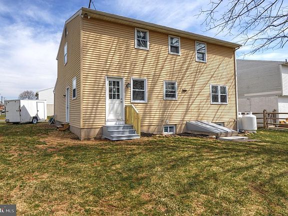 Refreshed four bedroom colonial tucked into a corner lot, backing to wooded space. Entire home has been updated throughout with new windows and doors, laminate flooring, carpet, and paint. Open living room with brick wood-burning fireplace carries into dining area and renovated granite kitchen with two pantries and stainless steel appliances. Off of kitchen is powder room and access to level yard with what once was a pond (just needs a pump to function once again!) Finished basement along with washer/dryer hookup and Bilco to exterior. Brand new propane HVAC system and hot water heater. Second level has spacious master suite with walk-in closet and tiled bathroom with shower stall. Three additional bedrooms along with hall bath that is also completely brand new. This home is immediately ready for its new buyer!