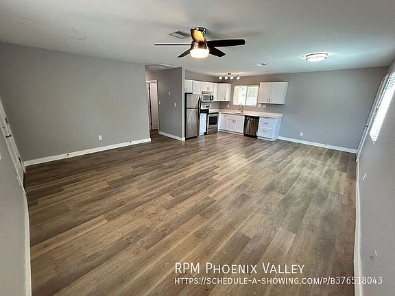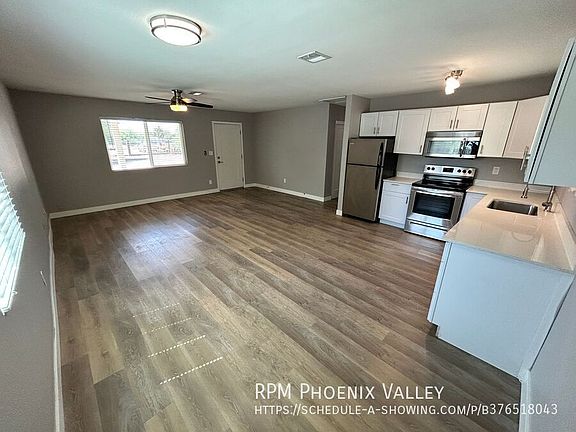 Charming 2x1 Buckeye unit with custom NEW Grey paint and warm vinyl plank flooring & NO carpet in unit and updated kitchen & bath, Across street from Buckeye Elementary Open concept den to the eat in kitchen. Kitchen has all Stainless Steel appliances, sleek white cabinets and upgraded quartz counter-tops! Unit has updated light fixtures throughout! Two good sized bedrooms; one with walk in closet & the other with side-by-side closet and a full bathroom that has been upgraded. Laundry closet with washer and dryer included. Private fully enclosed backyard! Home is friendly to a max of two spayed/neutered pets 35lbs or smaller with $500 per pet fee. We do not list on Craigslist or Facebook Marketplace if you see an advertisement there it is a SCAM $50.00 non-refundable application fee per person, age 18 or over. Base rent doesn't include 4% monthly admin fee or $75 monthly W/S/T fee. Full security deposit of $1275.00 + $250.00 non-refundable admin fee due and pet fee if applicable is due upon approval. Move in date must be between 7 & 30 days from lease signing/payment of security deposit. If moving in on or after the 5th then pro-rated current month rent is due as well as the following full month. All rent is due 7 days prior to move in.