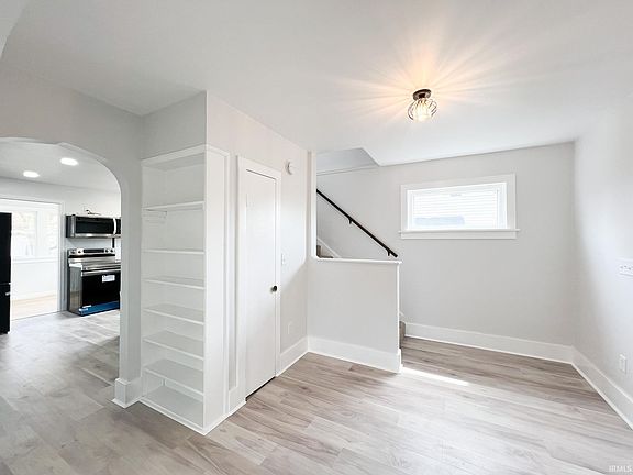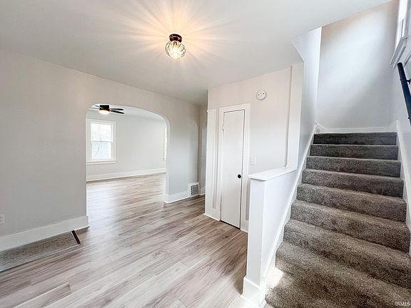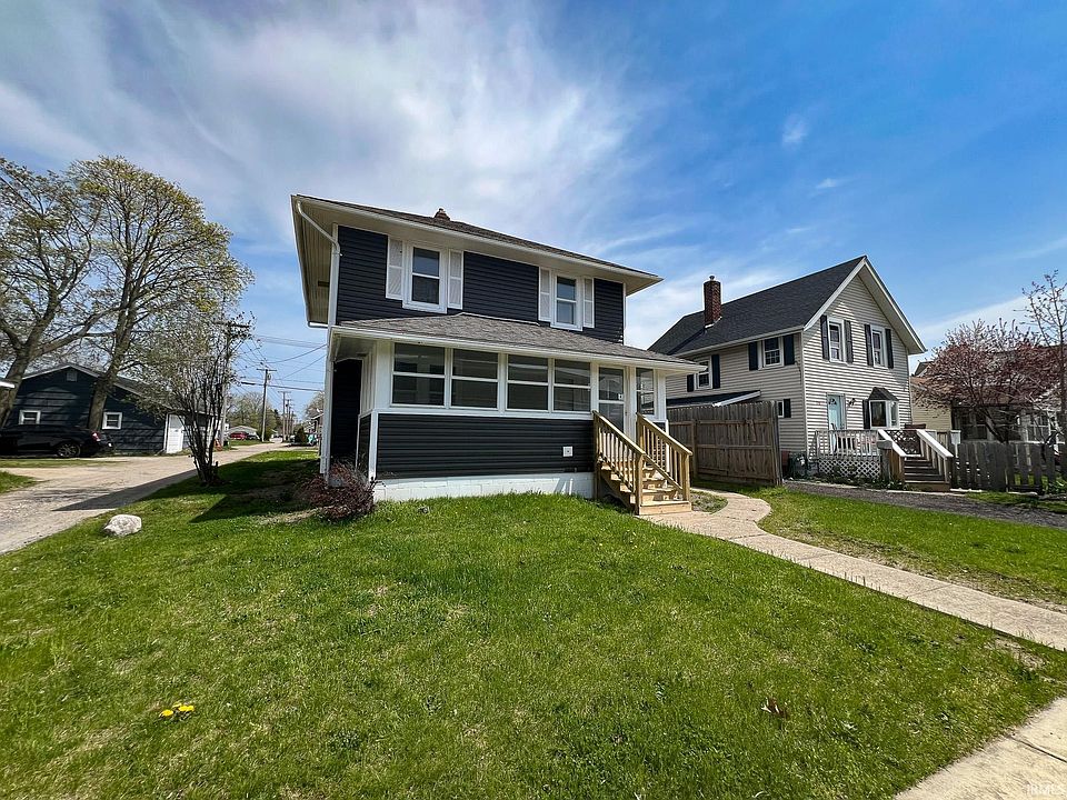 This move in ready home is located right across the street from Beiger Elementary School! Off street parking for 2 cars PLUS a 2-car detached garage. Features include enclosed front & rear porches, large foyer entry, living & dining area and cute remodeled kitchen all on the main level. Upper level has 3 nice sized bedrooms and the fully remodeled bathroom with a tile tub surround and large closet. On trend kitchen includes beautiful green cabinets, butcher block counter tops, shelving and all new appliances. New roof, vinyl siding, paint, flooring, lighting, updated electrical panel and more! Full basement, Culligan water softener. This is a must-see home in a convenient location!