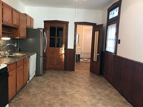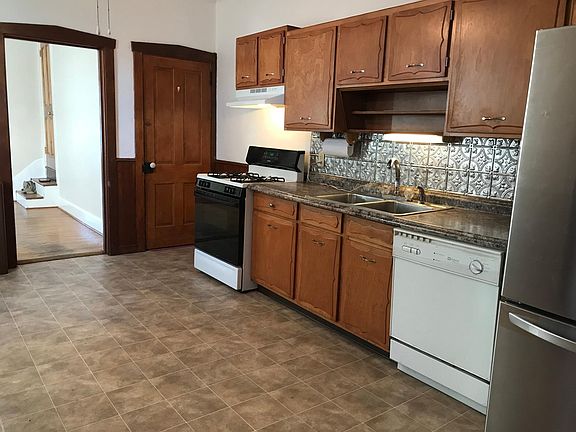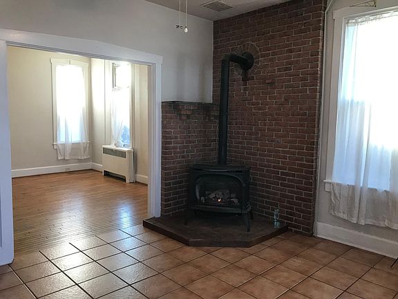 Cute townhouse in very good condition, new paint and carpet. This is a quiet street and a 5 minute walk to the E-town train station and downtown. The house has gas heat and a gas fireplace in the living room. The eat-in kitchen has a brand new fridge, plus a dishwasher and gas stove. There is a separate dining room as well as an equipped laundry and storage area and shed on the first floor an an attic also The second floor has two separate bedrooms and a "captive" bedroom...one you must walk thru to get to another. There is attic storage space. References required. Pets are conditional and may require an additional deposit and/or fee. Landlord pays trash, tenant pays all other utilities.