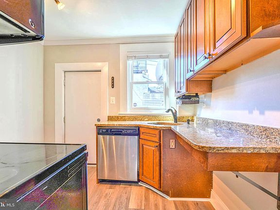 Interior Townhome in highly sought-after Upper Fells Point! Walking distance to Patterson Park, John Hopkins, restaurants, bars, and shops. The Main Level features the Kitchen (w/ granite countertops, stainless steel appliances, and custom cabinetry), a Full Bath, and Dining/Living Room space. The Upper-Level features 2 newly carpeted bedrooms. Spacious rear patio and unfinished basement access from the exterior only. New water heater, new floors downstairs (LVT) have a lifetime warranty, new floors upstairs (carpet) with warranty, and the basement walls have been dry-locked. Central air throughout the house.