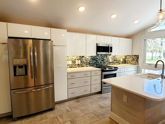 - Features: Breakfast Bar, Kitchen Island, Pantry, Stainless Steel Appliances, Solid Surface Counters