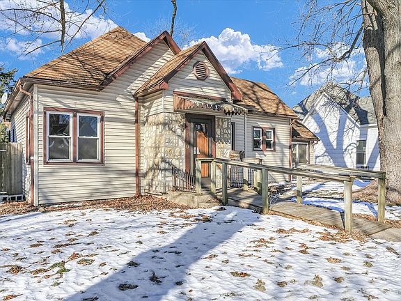 This delightful ranch home has 2 bedrooms, 1 bathroom and additional living space created from the converted garage that includes a sliding door to the front of the home for a second entrance making it perfect for a home office, den, or playroom. You first enter into the foyer which has a coat closet and space on the other side for a drop zone bench or additional storage. The inviting living room has refinished hardwood floors, two ceiling fans for increased air circulation creating a warm and comfortable gathering space. The kitchen offers practicality and style with a dishwasher, gas hookup for your stove, space for a refrigerator and recessed lighting above the sink for a bright, functional workspace. Both bedrooms also have restored hardwood flooring and include ceiling fans ensuring comfort year-round. Some updates include some plumbing and electrical improvements in (2011), the flat roof on the home and water heater were installed in (2016), the main roof installed around (2010) and the furnace was replaced in (2023). The washer and electric dryer are also included for your convenience. Vinyl windows throughout and durable vinyl siding add to the home's efficiency and low maintenance. Outside you have two sheds, a fully fenced large yard with multiple gates and alley access for added convenience. With its combination of upgrades and charming features, this home is one you should see. Schedule your private showing today!
