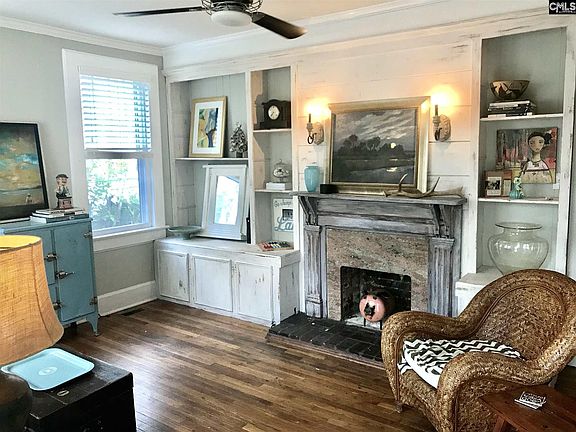 - Living Room: Fireplace, Floors-Hardwood, Molding, Books