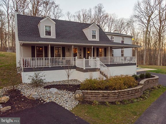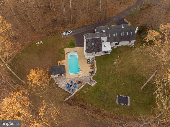 Beautiful, extremely well cared for, 5 bedroom, 3 bath home nestled on 1.9 acres, in a very PRIVATE setting. This home features an updated, large, eat-in kitchen that boasts an island that seats 5, electric wall oven plus microwave in addition to the standard gas range/oven, tons of cabinet space with floor to ceiling storage, and enough room for a dining table seating 8! The main floor also offers a very nice sized living room with wood burning fireplace with plenty of room for an office area as well. There are 2 spacious bedrooms located on the first floor with a full bath off the hall and a 3 seasons room overlooking the rear yard. Upstairs offers 3 large bedrooms, with 2 newly renovated bathrooms. The second story of the home offers high efficiency central air! The full 9' basement runs under the entire home and offers plenty of storage and other possibilities. Outside you will find a gorgeously added inground fiberglass saltwater swimming pool w/ automatic cover all setup to be as maintenance free as possible. The pool area offers a beautiful retaining wall with stamped concrete and pavers accented by a gorgeous pool house made of all weather resistant materials. The owner also added extensive drainage to the property when the pool was added. There is even a small jungle gym and inground trampoline. Do not miss this gem of a home and location!
