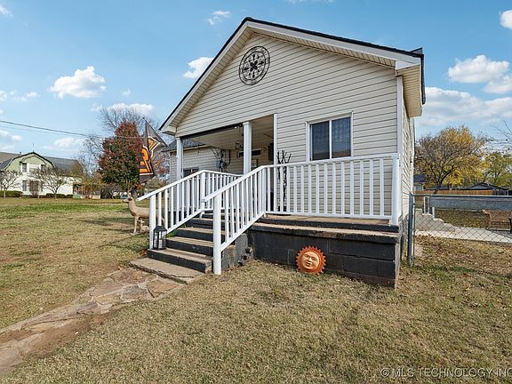 Welcome to your charming, historic in-town farmhouse, situated on a spacious double corner lot. This well-maintained home boasts a new roof installed in March 2022, along with numerous updates throughout. The new vinyl siding was added in 2015, and the floor joists and decking were replaced in 2014. The property also features a large shop with a one-car garage and a two-car carport. Inside, you'll find 4 bedrooms, 2 living areas, 1 1/2 bathrooms, and ample storage space. The 1st floor master bedroom comfortably fits a king-size bed and includes two large closets. There is also an additional guest bedroom downstairs. The home also has a large, covered porch on the side and a new backyard concrete slab patio added in 2024. This historic farmhouse sits on a 0.31-acre double corner lot with a fenced yard. It even qualifies to be placed on Oklahoma’s National Register of Historic Places if you choose. This property does qualify for USDA loans! The perfect home to make your own!