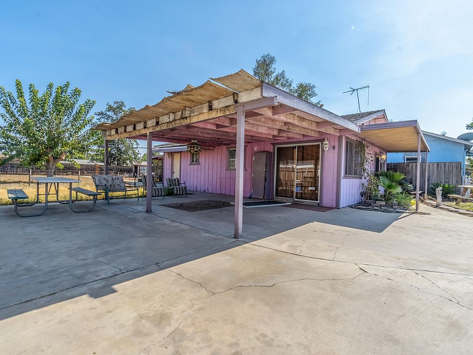 Quaint 2 Bed/1 Bath Home Sitting On Large First Of An Acre Lot, Covered Patio & More! This home features a fences in front yard, ton of extra cement around in the driveway for extra parking, Entering the home you are greeted in the roomy living room that has carpet flooring, large window drawing in ton of natural light. Kitchen right off of the living room w/tile flooring, ceiling fan, access to the carport, stainless steel range & range hood. Down the hall is both bedrooms that each have ceiling fans, bathroom w/step-in shower w/indoor laundry hookups. Spacious backyard has ton of potential for entertaining! This home is located near Shopping, Parks & Schools! This is a Must See!