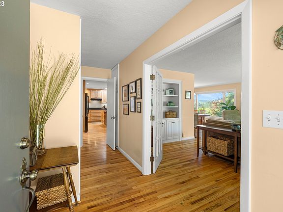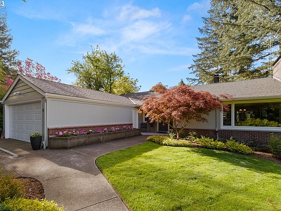 Understated Mid-Century Elegance, surrounded by lush perennial gardens with mature trees and flowering shrubs, sits this wonderful 4 bedroom, 3 bath daylight basement home that enjoys views of the southwest hills, sunsets and offers serenity and beauty with the ever changing seasons. The picture windows frame the colors of the landscaping to be enjoyed all year long from the inside or the outdoors. Main level living includes the primary suite, + 2 more bedrooms that could be an office or den, a formal living room, dining area and a large updated Island kitchen. Skylights and large window expanses flood this level with natural light. The primary suite opens to a private deck that overlooks the backyard. The kitchen and dining areas also spill out onto another large deck that offers a wonderful space to gather, BBQ, read a book or just to relax and listen to the birds and watch the squirrels. The lower level with an outside entrance enjoys a family room, kitchenette counter, 1 bedroom, a full bath and a bonus room that has the laundry facilities, space for exercise equipment, craft room or whatever your needs are. Gleaming hardwoods, vinyl windows , newer roof, new gas boiler for the radiant heat, mini split systems for heating and cooling, new garage door and much more shows the love that the current owners have bestowed on this home in the last 38 years. This neighborhood is a hidden gem that has great proximity to downtown Portland, Lake Oswego, Lewis and Clark College and all major arterials. A short walk takes you to Tryon Creek State Park with all its amazing amenities, running/walking trails, bike paths, horse trails and a lush forest that is home to a variety of flora and fauna. [Home Energy Score = 6. HES Report at https://rpt.greenbuildingregistry.com/hes/OR10215251]