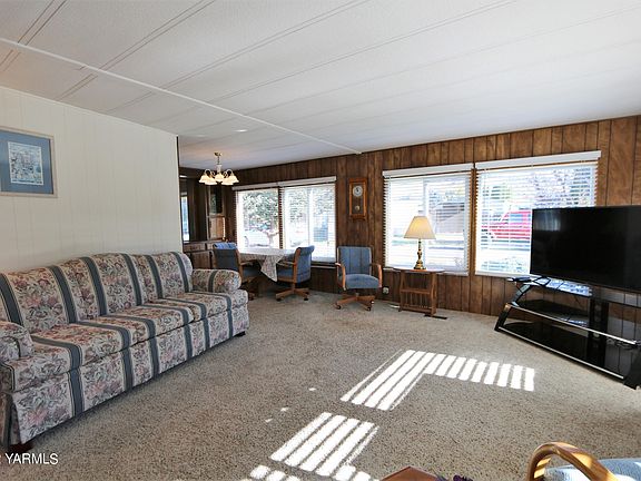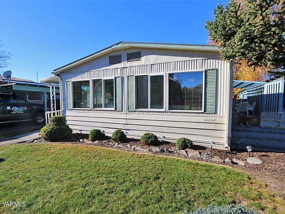Welcome to Country Squire, located in a country setting and only minutes away from the heart of Selah. This 3 bedroom, 2 bathroom home sits in a family-friendly park and has many updates throughout. This home comes fully furnished with a brand new smart TV, all appliances including a stand-up freezer, and much more. Recent updates include newer windows, an energy efficient pellet stove, sinks and faucets, and some floor coverings. The seller is offering a $3,000 credit for the remainder of floor coverings. There is a covered carport and shed, full of tools that you can use! The forced air heat and air conditioning keep this home the right temperature at all times. Enjoy company on the porch with a pergola and privacy fence. The grounds of this lot have a full (winterized) sprinkler system making it easy to maintain. The lot rent of $400 includes water, sewer, and garbage. The home is on a community well and community septic. Cash only. Applicants must be approved by park management with a $35 background check.