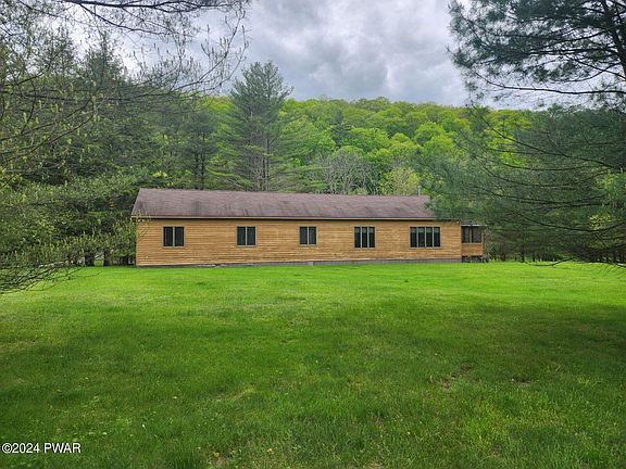 Location, location, location! This is the place to enjoy outdoor life on your 2.66 acres with community access to the Delaware River and minutes to the Lackwaxen River. Close to skiing, winery, brewery, Lake Wallenpaupack and much more. St. Vincent's Pointe was originally a camp and transformed into private homes. This building was the camp canteen and after renovations in the early 90's become a three bedroom two full bath one level home. Freestanding wood burning fireplace, open living area with hardwood floors, large bonus room and central air conditioning add to the comfort in this unique home. The screen porch and two level deck are perfect places to relax in peace and quiet to enjoy wildlife and nature surrounding you. Wallenpaupack Area School District