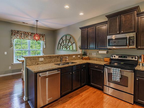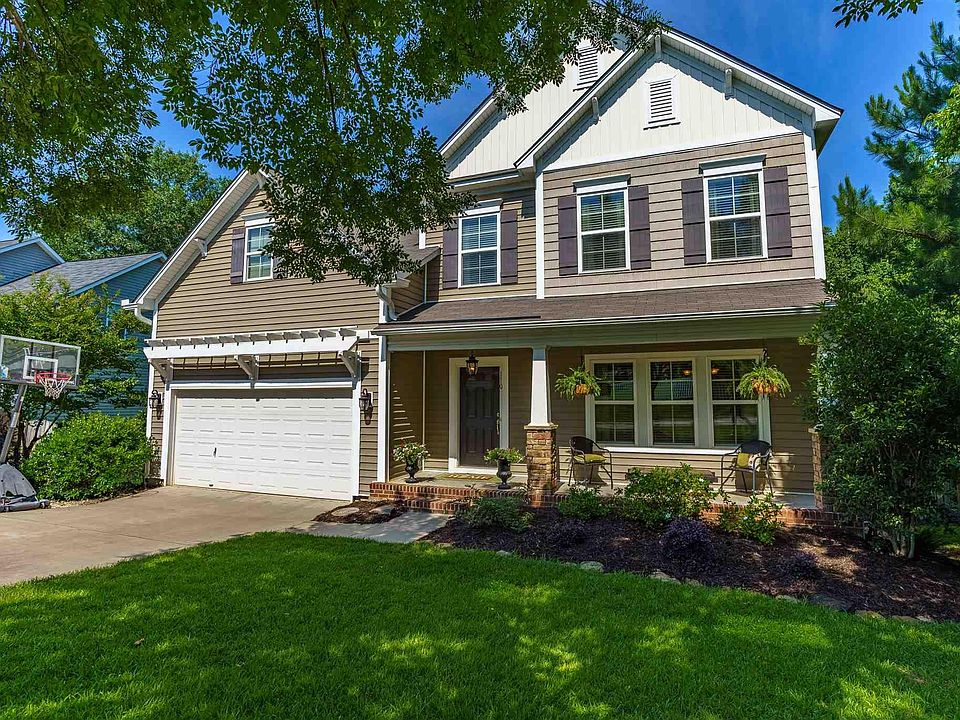 Welcome home to 110 Saints Creek Lane! The large front porch welcomes you into this beautiful home. You'll love the hardwood floors throughout the open living spaces, the granite countertops, and the stainless steel appliances. Details like the barn door separating the formal dining room and kitchen will make this home stand out from the others. This home offers 4 large bedrooms, including an expansive master bedroom, AND 2 bonus rooms that make great offices, playrooms, teen spaces, or even a man cave. The backyard of this home is like no other. You'll enjoy not 1, but 2 decks, overlooking the large, fenced, private, professionally landscaped yard. The first is right off the kitchen and family room. Below, you'll find an additional deck with room for another dining table and plenty of space to relax and enjoy the view of the trees and the creek beyond them. This home also offers a large walk-in crawlspace with plenty of room for additional storage. Located in a small community with a large community pool and zoned for award-winning District 5 schools. Looking from afar? Be sure to check out the 360 degree tour! Back on the market because buyer received a job offer out of state. Call to schedule an appointment and make this one your home today!