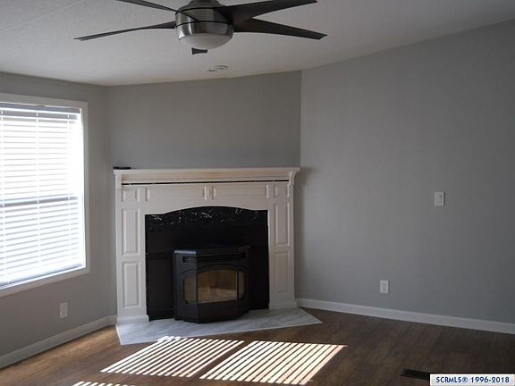 - LIVING ROOM: Blinds, Ceiling Fans, Pellet Stove