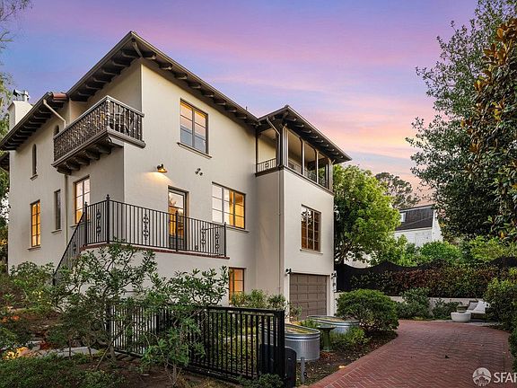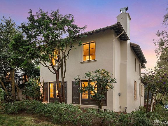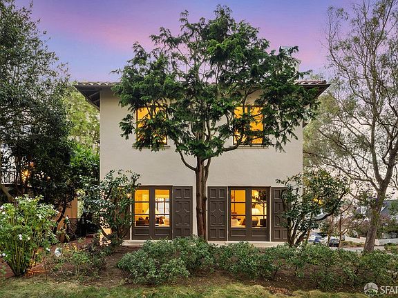 Situated on a fabulous corner lot across from Terrace Green Park and just blocks from West Portal Avenue, this stunning Spanish Mediterranean residence must be seen. Walking up the brick walkway will fill you with a sense of calm as you are surrounded by lush landscaping and mature trees. The grand alcove entry, adorned with wrought-iron details, opens to a large foyer. To the right, a spacious living room with a fireplace; to the left, a formal dining room bathed in natural light from windows on three sides. The thoughtfully designed kitchen features a central island with prep sink, built-in seating with storage, a SubZero refrigerator, and a Wolf range and lots of cabinet space. A bedroom and full bath complete the main level. Upstairs, the expansive primary suite boasts plenty of closet space and a luxurious ensuite bath. Two additional bedrooms, each with private balconies and a full bath, offer comfort and convenience. The lower level, added with permits in 2016, includes a wine cellar, wet bar, laundry room, half bath, and a generous media room. Interior access to the garage enhances convenience. Additional features include a new terracotta roof (2017), backup battery system, EV charger, automatic sprinkler system, driveway gate and so much more.