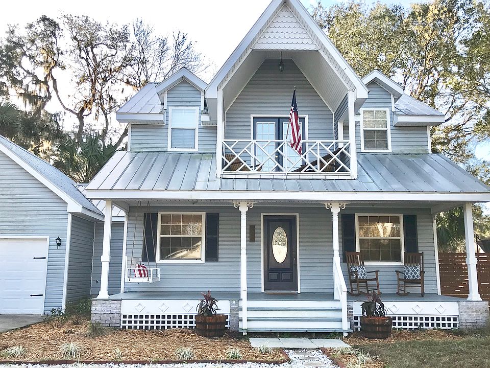 *under contract/still show One of a kind charming 3 BR/2BA PLUS Loft Home with Front Porch, Vinyl Siding and Metal Roof for easy maintenance located on 3 Lots. A 180 SF finished room (not included in square footage) above the garage with central heat and air it can be used as an office, workout room, man cave.... Open concept Dining, Living and Kitchen. A beautiful farmhouse style kitchen with easy clean white cabinets and hardwood floors with all fairly new appliances. Fresh paint throughout. Hardwood Floors in living and dining, kitchen, downstairs bedroom and bath, stairway, upstairs bedroom and loft. Master Bedroom has a walk-in closet and bath with shower and two pedestal sinks. All bedrooms have large closets with built-ins. Loft area has french doors opening to a private deck. Large front porch, RV/Boat Parking with RV Hook-up, detached shed for extra storage and wood deck for grilling. Large Inside Laundry complete with storage, cabinets. HVAC System installed May of 2016. Separate Well for the lawn. One block from the intracoastal waterway. Community has two boat ramps and park. NO HOA or CDD Fees. Close to shopping, dining, medical, historic St. Augustine and the white sandy beaches and I-95. This is the home you have been waiting on! CALL or TEXT for appointment 904-415-0782
