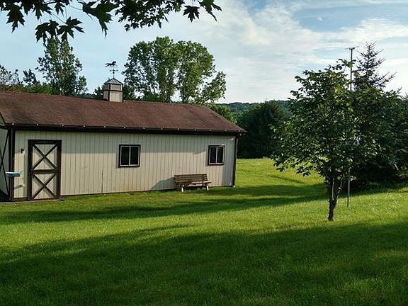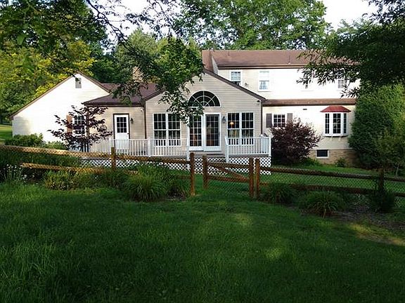 Delightful four bedroom Colonial sits in the midst of 4 lush green acres on a quiet cul-de-sac street. An Updated Kitchen with Granite Counters, stone backsplash and hardwood flooring opens into the quaint Family Room with a brick fireplace. Adjacent to the Kitchen are French doors which lead into an inspiring Studio complete with a vaulted ceiling, skylights, powder room, mud room with laundry and a wonderful wall of windows overlooking the backyard and attached Deck. The first floor also includes a Den, Formal Living Room, additional Powder Room and a spacious Dining Room. The Master Bedroom Suite boasts a large Walk-In Closet and an Updated Bath. 3 More Bedrooms and another Full Bath complete the Second Floor. The Walk-Out Basement provides yet another finished living space on one side and storage/Laundry on the other. The grounds feature a large Barn for storage or additional garage space, a fenced-in backyard area, a lovely Gazebo and an expansive green field.
