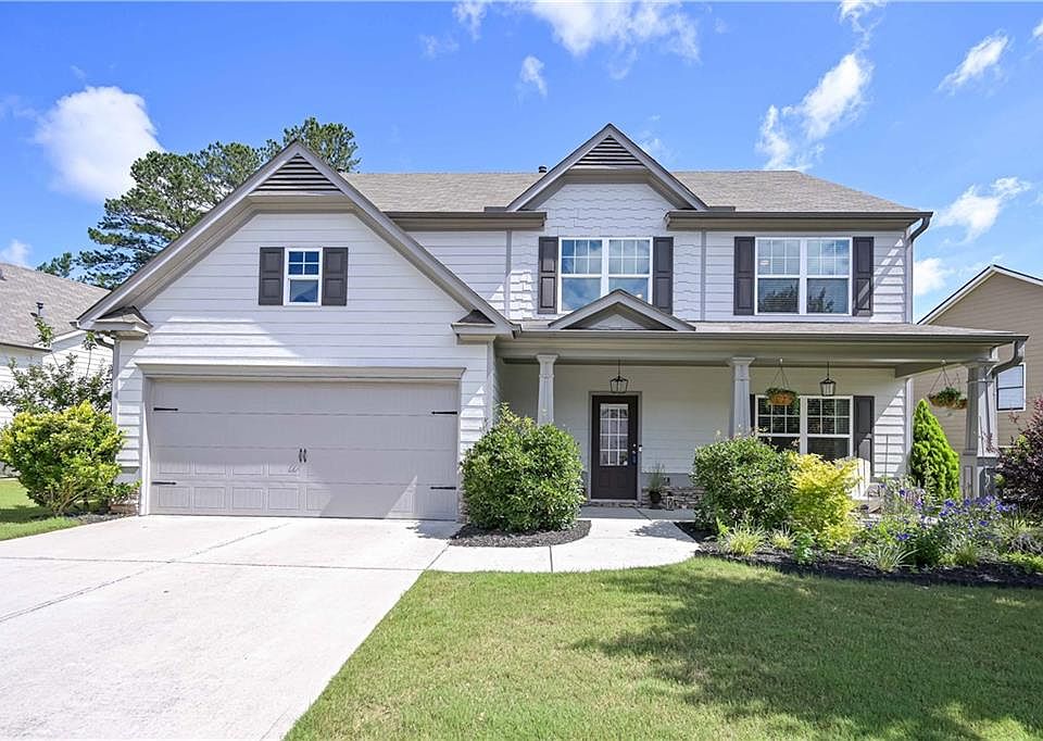 Location, location, location! Welcome to the Mirage at Vista Lake! 110 Serendipity Way is in the sought-after Vista Lake swim/tennis community. Residents of the Mirage at Vista Lake enjoy access to community amenities such as a pool, playgrounds, clubhouse, walking trails, fishing, kayaking and tennis courts. Conveniently located in the city limits of Dallas Georgia in Paulding County this home is situated near schools and offers easy access to shopping, the Silver Commit Trail, dining, and entertainment. The association fees cover the cutting of the front yard grass, which combined with the beautiful custom style exterior finishes provide complete curb appeal. This stunning 4 BR 2.5 BA two-story home emits a warm and inviting charm as you approach the covered front porch. Upon entering the home, you will be greeted with a grand two-story foyer entrance creating a welcoming atmosphere for guests. As you enter the home from the stepless two car garage you will enter the open concept great room/kitchen area enjoying the convenience of one level for bringing in groceries. The kitchen features exceptionally durable LVP flooring, breakfast area, pantry and an oversized granite island which is the focal point of the room. The open layout seamlessly connects the spacious family room and kitchen, making it an ideal space for entertaining. The family room adjacent to the kitchen is spacious and features plush carpet and a gas fireplace perfect for a cozy evening at home. Right next to the kitchen is a large separate dining room that offers the perfect balance of style and functionality with an open concept formal living room that provides a classic and timeless aesthetic. Located off the foyer entrance there is a convenient half-bath in the foyer area for guests. Upstairs you will find the laundry room, four bedrooms and two full baths. The generously sized primary suite is your private retreat after a long day, featuring a trey ceiling and double doors leading into the luxurious bathroom complete with a double vanity, separate soaking tube and spacious walk-in closet. The 3 remaining rooms are spacious. The private level backyard provides ample space for outdoor activities or just relaxing with your favorite drink on the patio or around the firepit. This home truly checks all the boxes for today's homebuyer-style, space, and functionality in a beautiful community setting.
