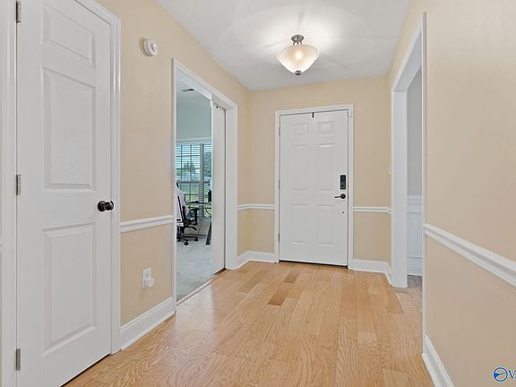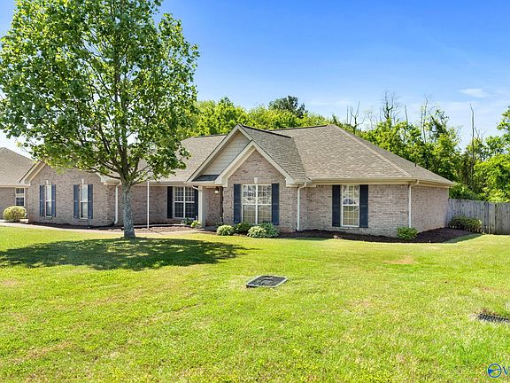 Full brick ranch home with private backyard and mountain views! Isolated owner’s suite with trey ceiling and sitting area. Glamour bath has double vanities, whirlpool tub, separate shower, and walk-in closet. Formal dining room with trey ceiling, wainscoting, and wood flooring. Spacious living room with wood burning fireplace, recessed lighting, and wood flooring. Three additional bedroom all with ceiling fans. Roof and kitchen appliances were all replaced in 2022. HVAC replaced in 2020. No HOA. Covered deck overlooking your private backyard. Madison County Schools located in the Central School district. Less than 15 minutes to downtown Huntsville and 20 minutes to Redstone Arsen