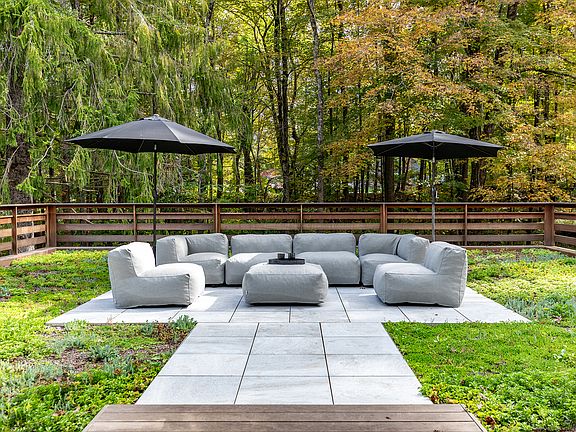 Modern Lakeside Retreat with Guest Cottage and Rooftop Terrace. Where modern European design meets the soul of New England living - welcome to this stunning, fully renovated lakeside property, composed of a sophisticated main residence, a stylish guest cottage, and a three-car garage with a rooftop garden terrace ideal for entertaining. Designed by a visionary European team, the main house features distinctive tile siding-both weather- and time-resistant-and a warm, modern aesthetic. Inside, expansive glass panels and oversized windows flood the space with light and frame views of nature from every room. At the heart of the home is the grand living room, where a soaring double-height river stone fireplace and custom oak bookcase create a breathtaking focal point. Just before the living room, an all-glass sunroom-connected by an elegant glass pocket door-offers the perfect flexible space for dining, a home office, or peaceful meditation. The modern-designed kitchen features glass and stone finishes and top-tier Gaggenau appliances.. Step outside to enjoy the wraparound deck and series of patios, all thoughtfully positioned to connect the home to its natural setting and maximize indoor-outdoor living. A sitting room reveals a beautiful private terrace overlooking the lake Wononscopomuc. The fully renovated guest cottage offers a bright open floor plan, a very large kitchen, and a spacious bedroom. Car enthusiasts will appreciate the five-car garage, while the grassy rooftop terrace above provides a stunning setting for outdoor gatherings, yoga, or sunset cocktails. Nestled in nature, yet just a short walk from downtown Lakeville, the town beach, and local restaurants.