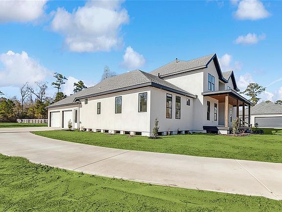 The house features an open floor plan with an array of impressive amenities, nestled in Madisonville this picturesque home exudes elegance, situated in a charming one street subdivision, the curvy driveway guides you to an extra large garage that will accommodate multiple vehicles. The 1.23 acre of land which the home is gracefully positioned on provides abundant room for family recreation, gardening, outdoor cooking. When you step into the home it is illuminated by the modern brilliance of LED lights, from the foyer to every room, energy efficient that creates a well lit, eco friendly environment for every day living, foam insulation surrounds the home, offering a cozy haven with temperature regulation throughout the seasons. The chefs dream kitchen boasts solid granite countertops, at the heart of the kitchen is an inviting island, perfect for meal prep or casual dining, stainless steel appliances gleam against the backdrop of modern colors, a butlers pantry off the kitchen, as well as a large pantry offering lots of storage, the dining area which is bathed in natural light from the expansive windows, creates a sense of airiness and openness, offering a beautiful view of the outdoors, step from the oversized porcelain tile flooring into the grandeur living room with 27-ft high tongue and groove sealed pine ceiling, the focal point of the room is a stunning ventless natural granite gas fireplace, framed by a meticulously crafted hickory mantle, adding warmth and sophistication to the space, beneath your feet lies Premium solid Euro Red Oak flooring, seamlessly blending rustic charm with modern luxury, with it's generous dimensions and meticulously chosen materials, which leads you out into the tongue and groove ceiling covered patio overlooking the tranquil backyard.