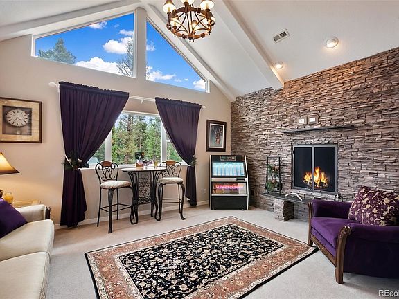 WOW is all I can say about this stunning custom built one owner home located on over 7 treed acres providing complete privacy! Western mountain views & rock formations abound on this piece of paradise! One of Denver's top interior designers decorated & created this beautiful home. As soon as you enter the home you have the WOW factor. The entry, living room, and kitchen have beautiful hand scraped wood flooring. Upgrades abound in this home. There is a wet bar, weathered granite, built in's, mountain views and a gas log stove in the family room! It's a great place for entertaining family & friends. There is also a formal living room with a vaulted ceiling & a gorgeous stone wood-burning fireplace to retire to after having dinner in the lovely dining room. The kitchen is a chef's dream with the most stunning granite EVER! Lots of custom cabinetry, spacious counter space, a double oven, oil rubbed bronze, a gas grill are just some of the features! Both main floor bathrooms have towel warmers. The master suite walks out to a private patio and features8' custom made doors, gorgeous granite counter tops, a large walk-in closet with built ins, a private water closet & an appealing shower. The upper level has a private office area that is currently being used as a bedroom, a HUGE 2ndfamily room, a spacious work area & an area for those movies, books, or to even to home school from! It also has a 3/4bathroom on the upper level that features a custom glass sink! The upper level is a great place for children, for those who work from home, or for guests to stay! The well built home is constructed from steel. Attractive stone work compliments the exterior of the home. A large cement patio provides the perfect place to watch the sun set over the western mountains. There is a 20x30 steel building on the lower level of the property to store those toys or cars in. There is also room by the home to build a garage. The high quality furniture can be included with the home if desired.