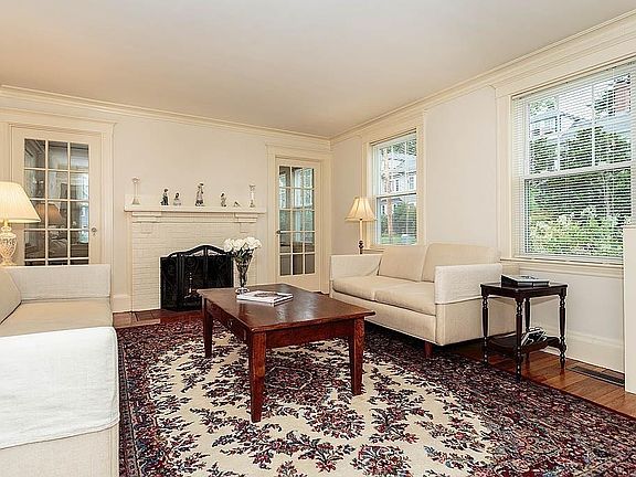 Inviting & desirable "Miller Style" spacious unit in pristine condition sited on a corner lot- Sunfilled First floor unit, spacious living room with a fire place, hallway to dining room, (3) bedrooms, updated bathroom & eat in kitchen. A Bonus sunroom/office hardwood floors throughout all replacement windows, central air conditioning. (1) car Garage & (1) Driveway Parking. Near Cushing Sq., Public Transp., shops, restaurants & a short drive to Boston & major highways. Showings begin with Open House Sat. Aug 6th 12-2 & Sun Aug 7th 12-2