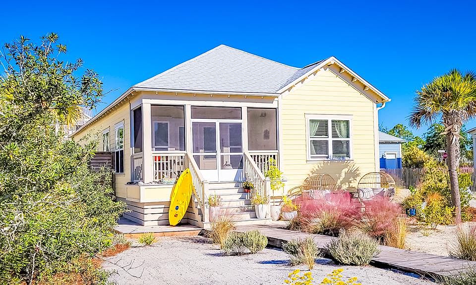 REDUCED $50K! Under 400 steps from the front door, down the boardwalk, to the sand, from this cozy Windmark "Beachside" home in coveted Phase 2. End beach days with a rinse in the enclosed outdoor shower before settling into this desirable 3 BR, 2 BA, 1471 SF split plan. Enjoy a well-appointed kitchen w/island seating and a spacious primary bedroom & bath w/separate shower, garden tub, double vanities & large walk-in closet. Tucked within the golf-cart-friendly community of WindMark Beach w/roving security, 3.5 miles of walking paths/biking trails, and a tranquil beach to explore. This home is a short walk to the community pool, beach boardwalks, and the Village Center featuring a waterfront restaurant/bar, a Wine Bar & Package Bar w/live music, a pizza shop, an ice cream/sweets shop, a pet store, a hair salon, a fitness center, etc.