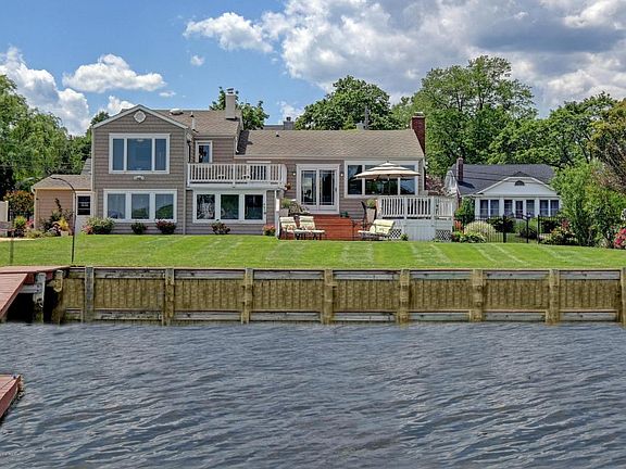 Wake each morning to breathtaking vistas & best of all worlds - Direct riverfront location provides ultimate in privacy w/unobstructed river views, private dock & 13,000LB Davit Master Boat Lift, welcoming neighborhood w/blue-ribbon schools & easy commute to NYC, landscaped grounds & prized Riparian Grant. Custom built Three/Four BR home w/attached Garage offers open floor plan w/walls of windows. Boasts gleaming hardwood floors, gourmet kitchen w/stainless appliances, granite counters, vaulted ceiling; Master BR offers private balcony & generous picture window to sweeping water views; newer baths; lower level boasts expansive river views & accommodates second living quarters for family & friends. Ultimate outdoor living w/expansive deck & blue-stone patio leading to water. Simply AMAZING!