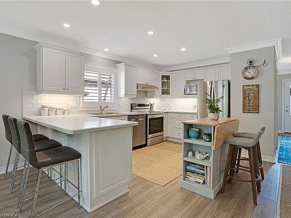 Extra windowsTasteful neutral decorRenovated bathroomMain floor laundryOpen concept designBreakfast peninsulaVersatile movable island