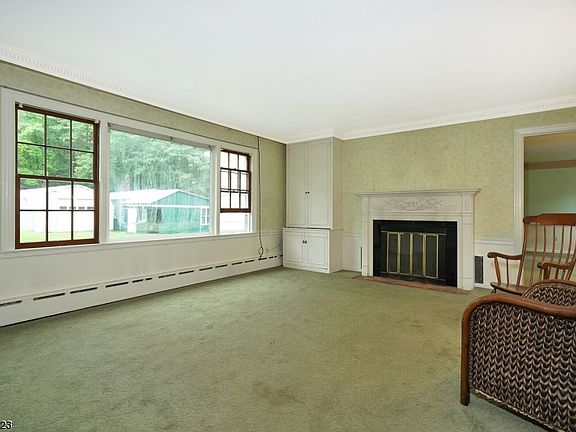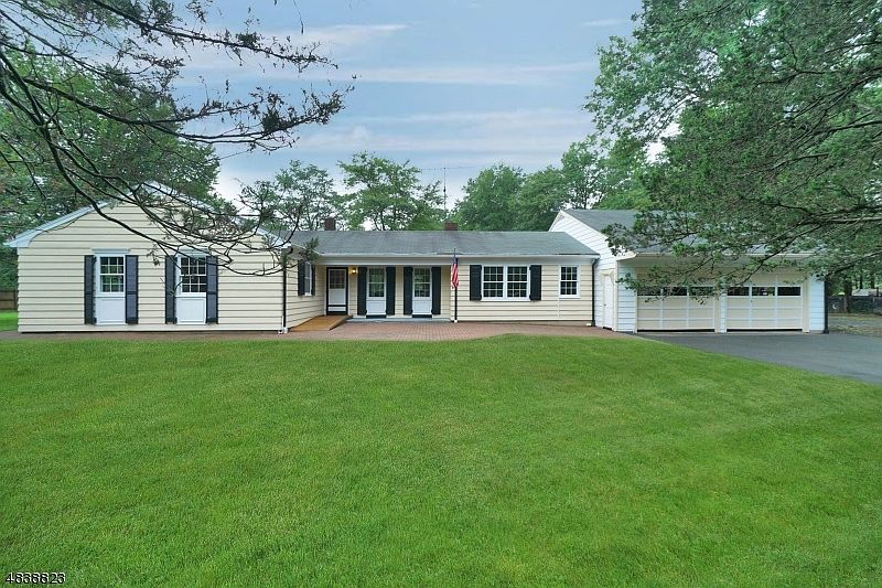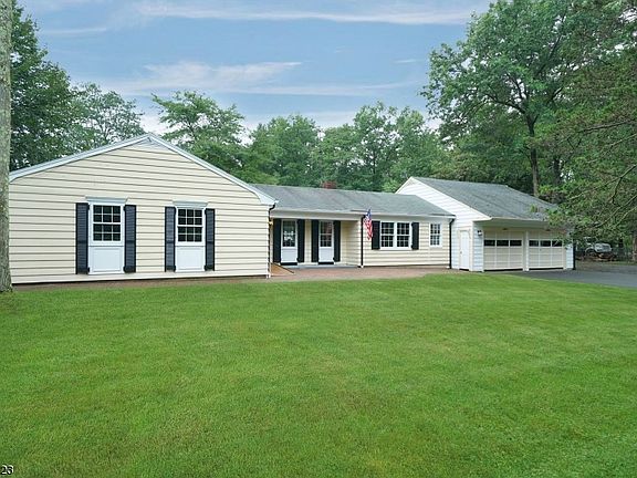 Welcome to this serene setting of this 1,499 sq. ft home as per RPR, with potential of expanding. This quaint ranch located on 1.6 level acres boasts an over sized attached garage with walk up stairsleading to an unfinished area with a shed dormer and 2 windows along with a side window, ready to add additional living area if the new buyer so desires. The cozy living room shows off the built in cabinets/shelves and fireplace. The primary bedroom has direct access to a dressing room with multiple closets and full bath. The opposite end of this ranch has 2 more bedrooms, full bath and eat in kitchen with access to the brick patio on the side of the house. There are outbuildings for hobbyists as well as plenty of parking. This private location is just minutes from Rts. 206, 287 and 78.