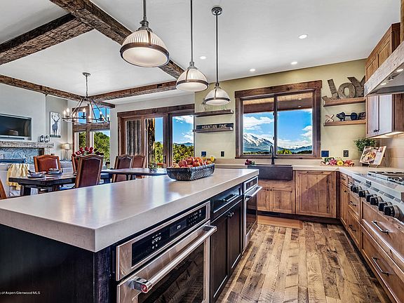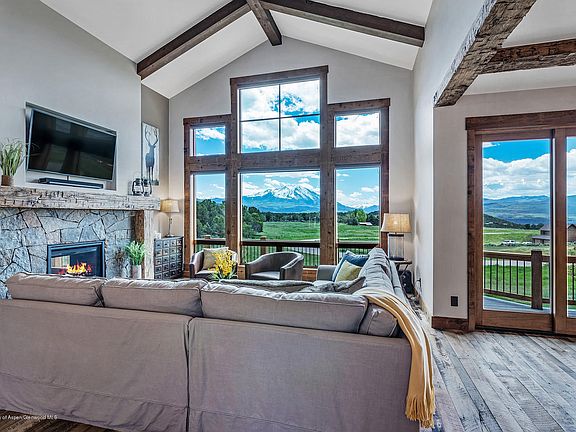 Take in the endless mountain views from nearly every room of this lovely Callicotte Ranch Home. This 4 bedroom home features an open floorplan, a main-floor master suite, main floor study, living/family areas on each level, 3 fireplaces, and a laundry room on each level. Luxuriously finished with barn-wood floors, reclaimed trim & barn doors, a chef's kitchen with a gas cook-top, hood, 2 dishwashers, prep sink, double ovens, walk-in pantry, and a dual zone central a/c. Located just minutes from Hwy 82 this home is convenient to all the amenities of the Roaring Fork Valley.