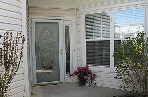 Terrific location for this Abbott Model WITH SUNROOM! Lots of upgrades, such as tall cabinets with corian counters, leaded front door with side panel, private stone patio & retractable awning,stall shower instead of tub/master bath, cabinets in laundry room, bessler stairs to attic storage, hardwood/family & dining rooms